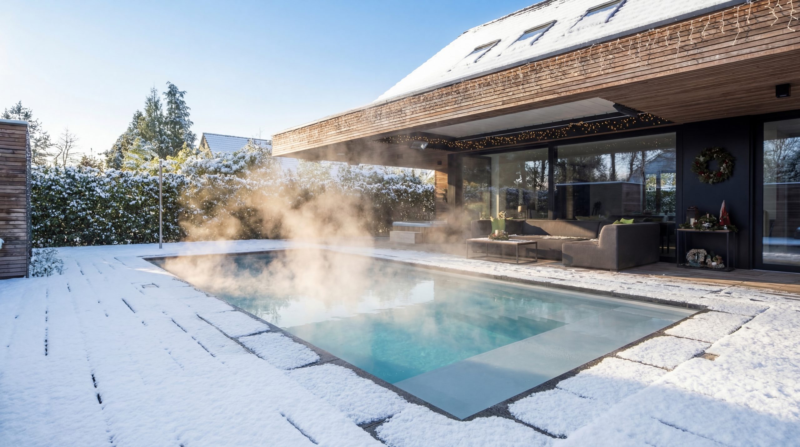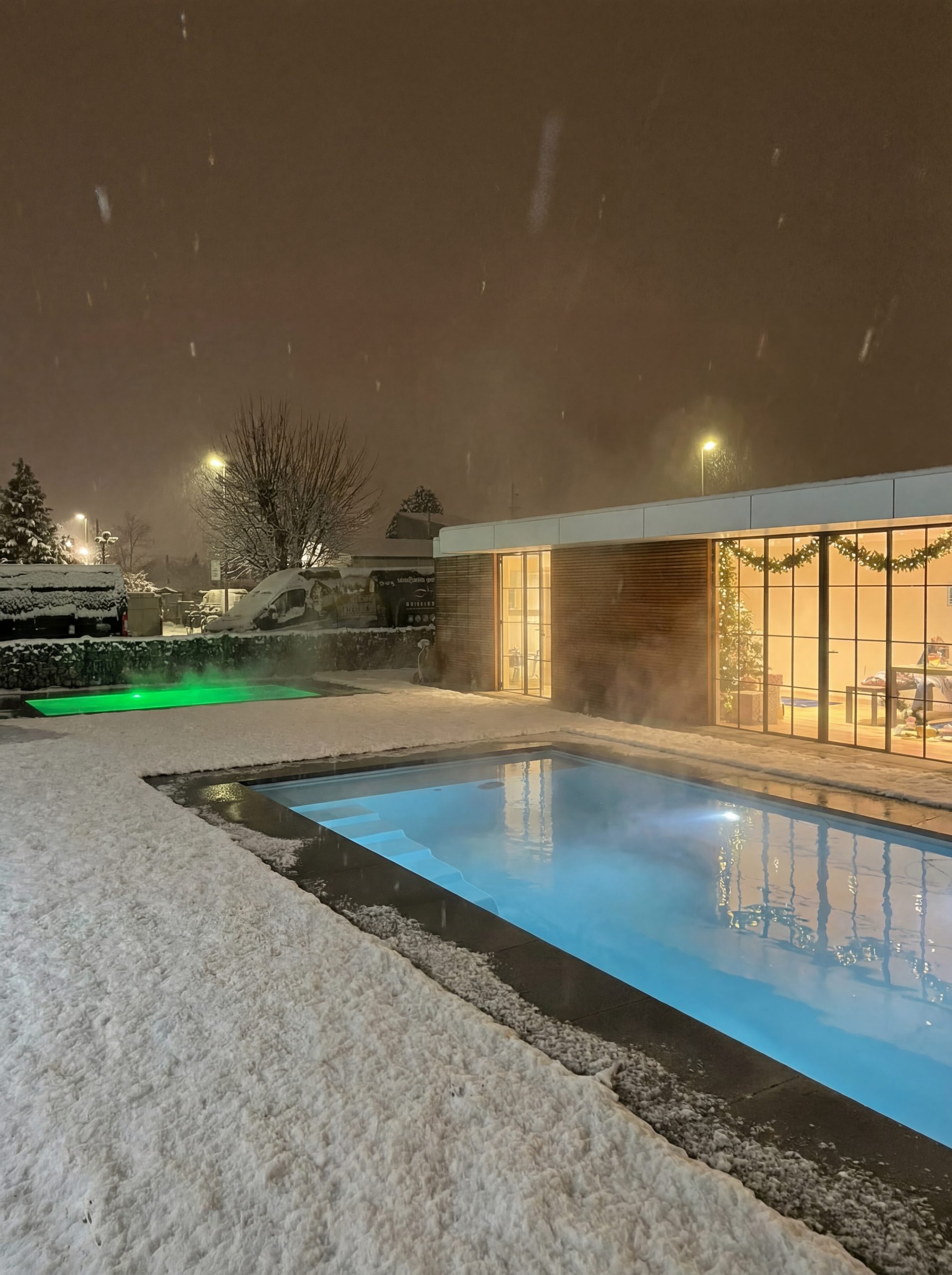 Wir übernehmen den Erdaushub, den gesamten Abtransport der Erde, die Betonarbeiten, das Einlassen des Beckens, den Einbau der Technik inkl. Umwälz- und Wärmepumpe, Filteranlage, automatischer Wasserbehandlung, die Randsteine und eine automatische Unterflurrollade.
